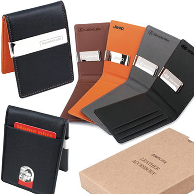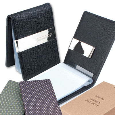 - [국내생산] 심플라이프 소가죽 엠보 카드수납 머니클립