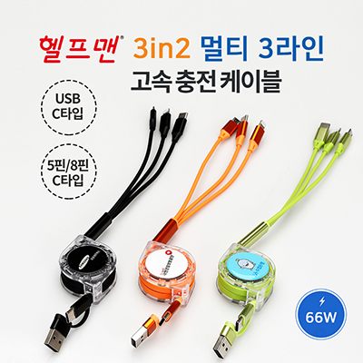 - 헬프맨 멀티 3라인 3in2 고속충전케이블(66W)