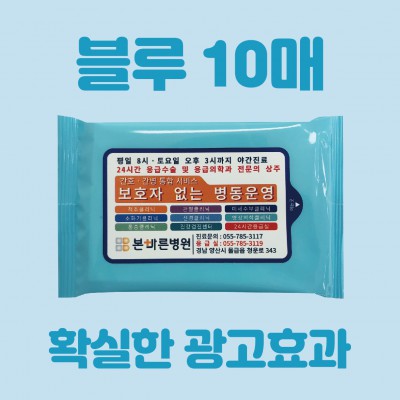 [빅사이즈라벨] 블루/청색/하늘색 케이스 물티슈 10매