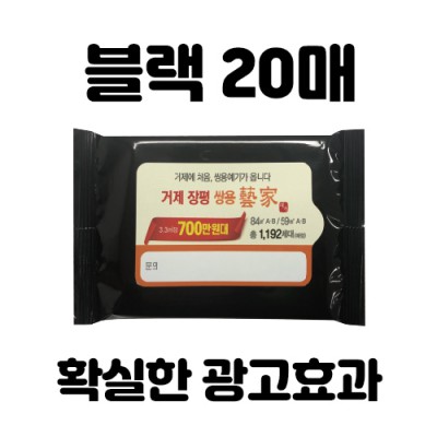 [빅사이즈라벨] 사이즈가 큰라벨 전도용 교회용 행사용 홍보용 물티슈 20매(블랙무광, 고급스런 검정)
