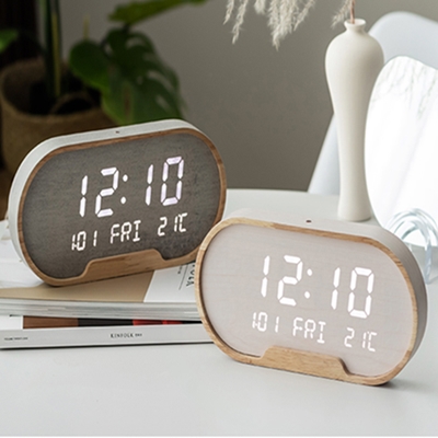 - 고급 우드 타원 인테리어 LED 탁상시계