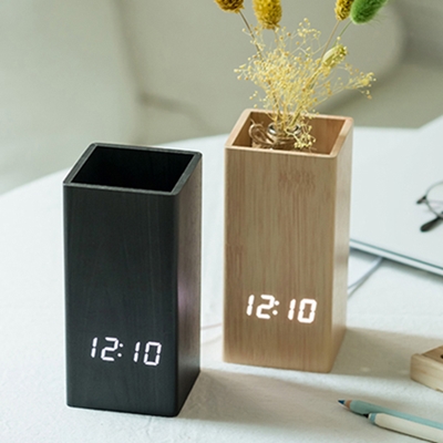 - 학교 단체 우드 문구함 LED 탁상시계