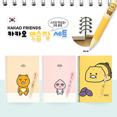 - 카카오 연습장 세트 (스프링 연습장+3색볼펜)
